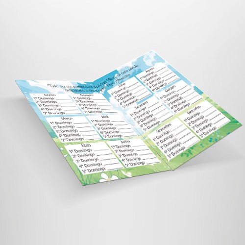 Com opção de personalização: Inserimos os dados da Paróquia, logo, etc.