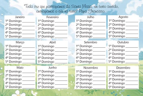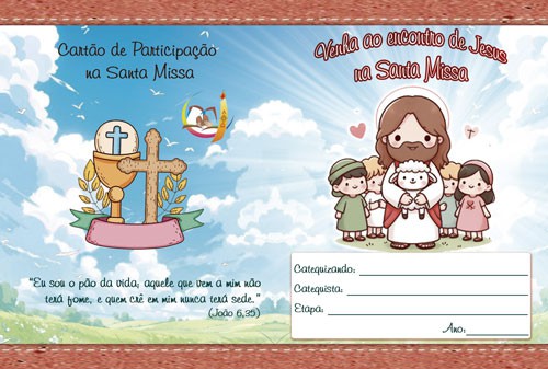 2501 Cartão de Participação na Santa Missa, Carteirinha de Presença - Modelo PARA IMPRIMIR