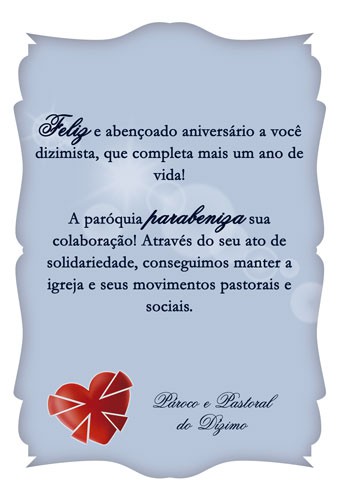 Cartão de Aniversário para Dizimistas Modelo CAZ116
