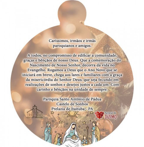 • Com opção de personalização: Inserimos os dados da Paróquia, logo, assinatura impressa, trocamos a mensagem do verso, etc.