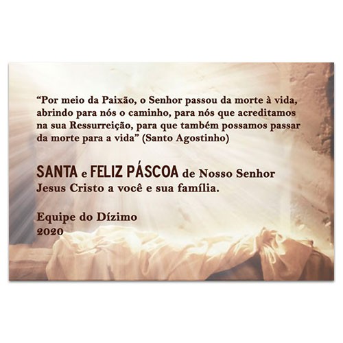 • Cartão modelo postal com opção de personalizar: Inserimos os dados da Paróquia, logo, assinatura impressa, trocamos a mensagem do verso, etc.