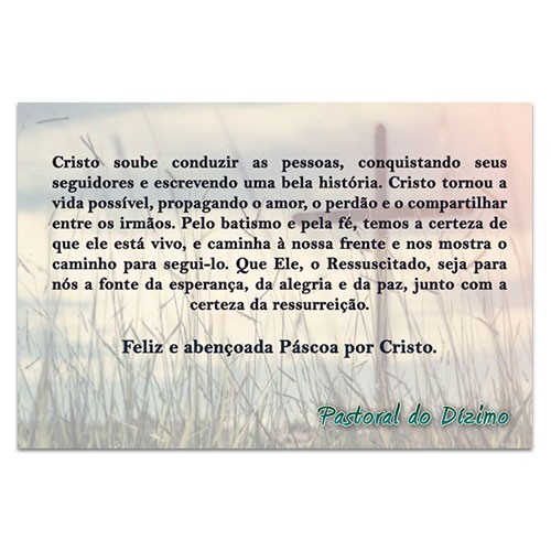 • Cartão modelo postal com opção de personalizar: Inserimos os dados da Paróquia, logo, assinatura impressa, trocamos a mensagem do verso, etc.